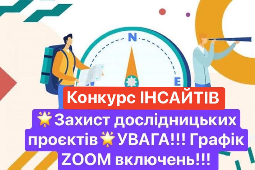 Ознайомтеся з графіком захисту дослідницьких проєктів та включень в ZOOM в наукових відділеннях і секціях КМАНУМ, кожному учаснику в групу вайберу або на електронну пошту буде надіслане посилання, код доступу.